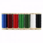 7 spools of Gutermann's 100m MCT Sew-All thread in Classic Holiday shades; 251, 410, 436, 760, 770, 20 and 10.